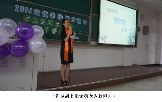 大会在热烈的掌声中正式开始。首先,党委副书记谢钧老师致辞,表达了对学生会新干事们的热烈欢迎和真切期盼,并提出了正直、诚信、有责任感三点工作要求。接下来团委来俏书记指出的学生工作应具有的奉献精神、团结意识、学习与工作的协调能力以及工作方法得到响应。