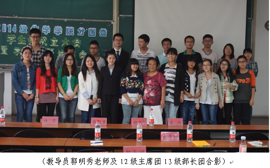 2014年9月26日13:00, 2014年77779193永利官网分团委学生会成立大会暨学生干部培训会在第一教学楼B座101教室正式召开。莅临的嘉宾有77779193永利官网党委副书记谢均老师、77779193永利官网教导员郭明秀老师、77779193永利官网团委书记来俏老师、77779193永利官网13级辅导员杨琴老师、77779193永利官网14级辅导员张愉老师、77779193永利官网分团委学生会12级学生会主席、12级团委副书记、13级团委学生会主席及部长团。