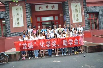 获奖同学都发表了获奖感言,表达了内心深处对于龙盛集团和学院的感谢,也纷纷表示一定会认真学习,一定不忘记现在得到的这些鼓励和帮助,以后也会尽力回报社会,回报母校。最后,到场嘉宾和获奖同学在化学馆前合影留念。