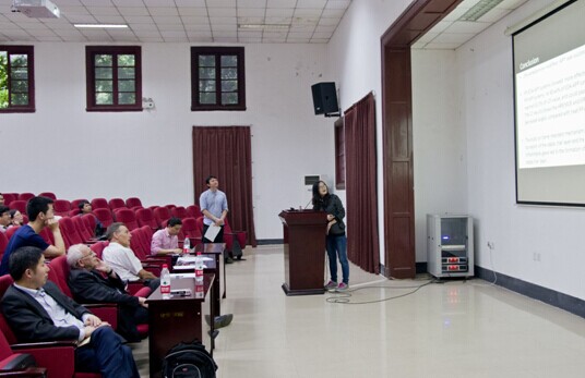 本次交流会由汪秀丽教授和陈力副教授主持,Camino教授和Hull教授做了精彩报告,介绍了目前关于阻燃的一些最新测试手段、分析方法以及阻燃剂的概况和应用前景。随后,部分从事阻燃方向的学生进行了报告,两位教授分别给与了建议,特别是大三本科学生曹警予同学关于改性APP的报告受到了一致好评。