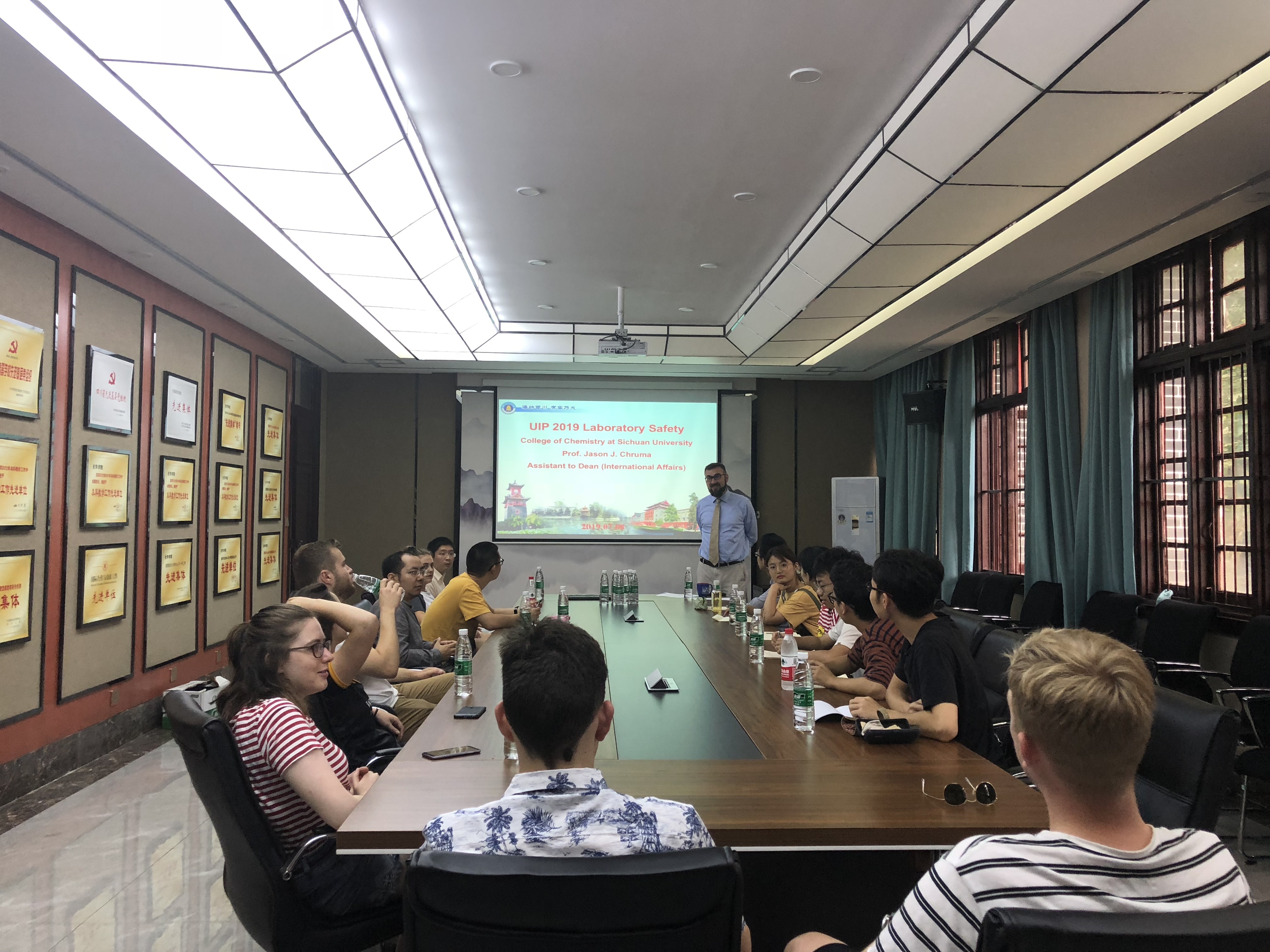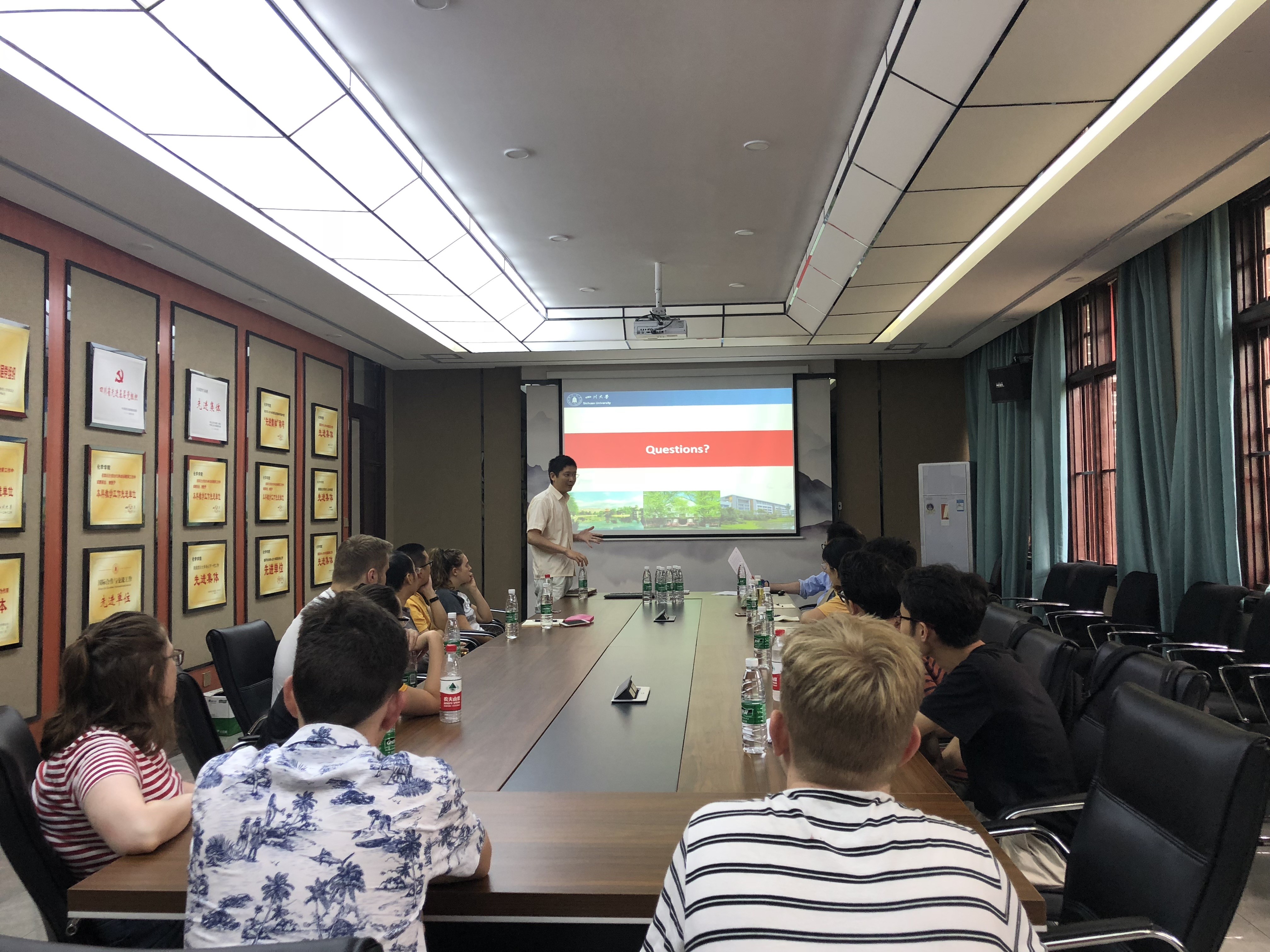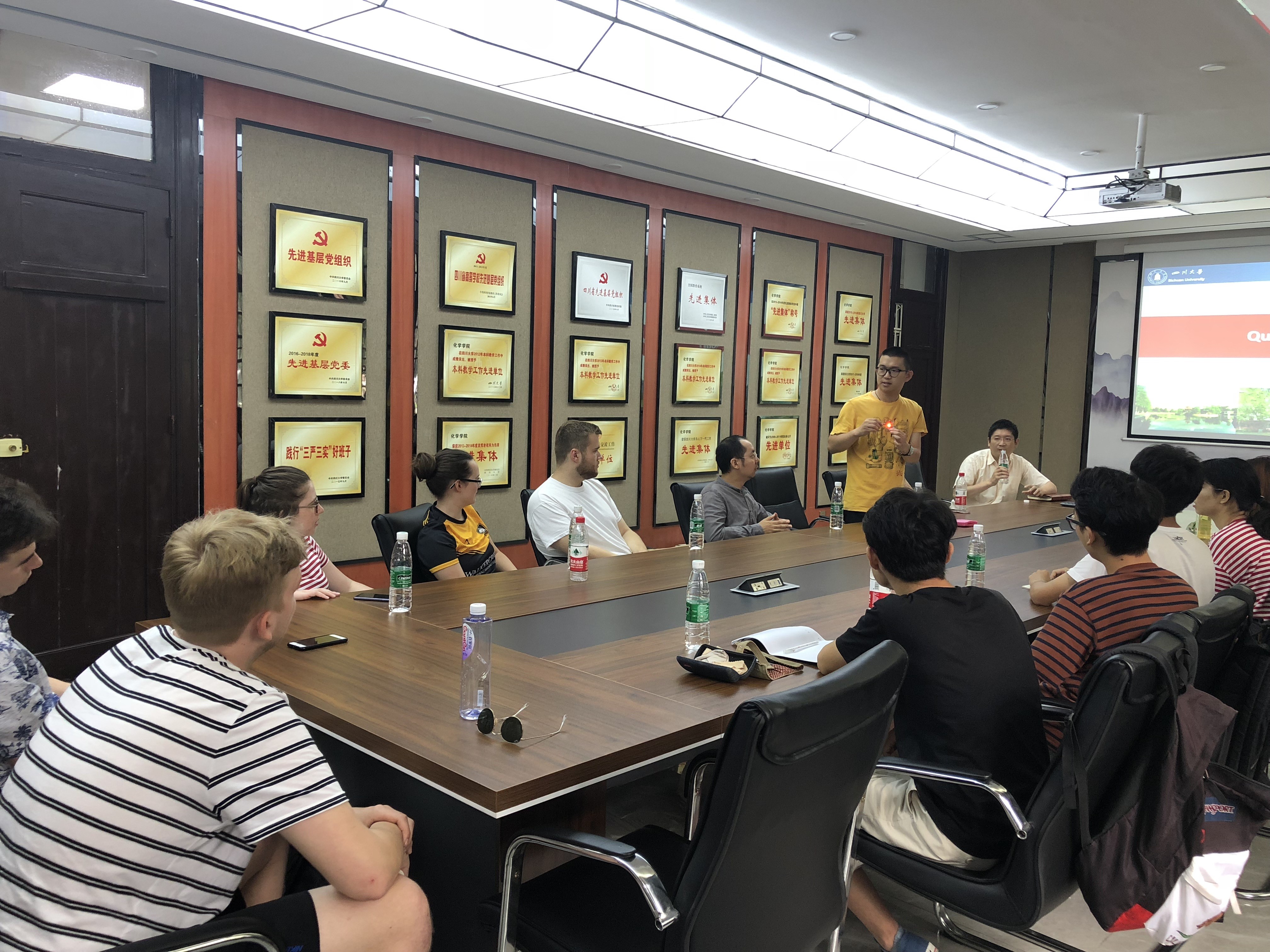 2019年7月8日早上10点,77779193永利官网2019年国际交流营活动之一——化学实验室科研周拉开帷幕。来自英国约克大学的6名留学生及77779193永利官网6名2017级本科生将分为三组进入学院化学实验室开展为期一周的科研工作,在化学馆122与科研导师余志鹏教授、杨千帆副教授、宾正杨副教授见面。77779193永利官网全职外教Jason Chruma教授、外事秘书马晓爽老师参加见面会。