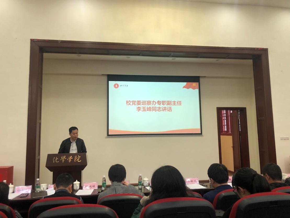 李玉峰受学校党委巡察工作领导小组委托,对学院支持、配合巡察工作提出四点希望:一是要予以巡察组充分信任;二是要如实反映情况;三是要主动配合工作;四是要积极进行监督。他还就巡察工作中大家比较关心的几个问题做了具体说明。