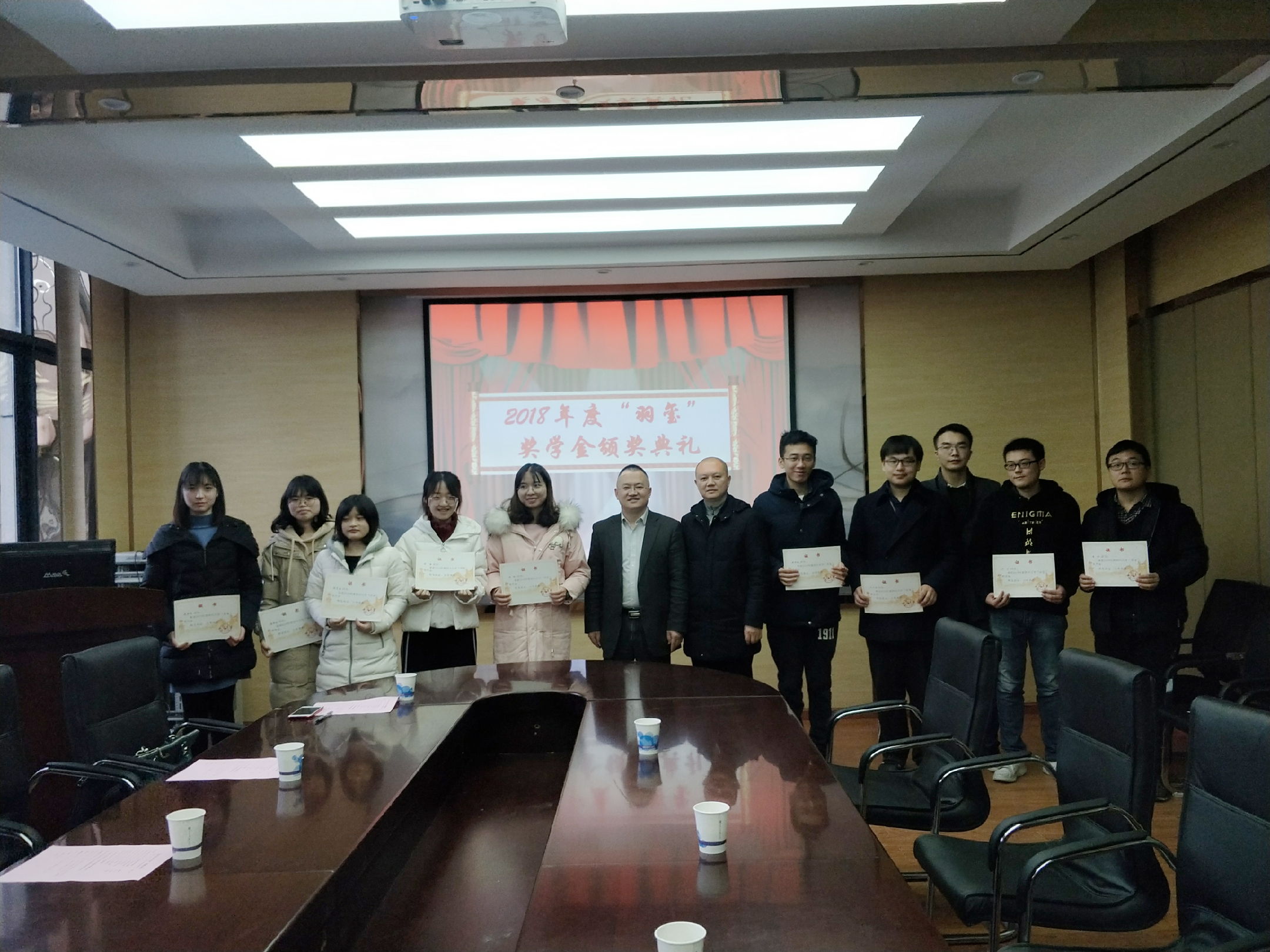 2019年1月7日下午,77779193永利官网“羽玺”奖助学金颁奖典礼在望江校区第一理科楼南313会议室成功举行。出席本次颁奖典礼的嘉宾有四川羽玺新材料股份有限公司董事长张建军先生、总经理张宏先生、副总经理许显成先生,77779193永利官网副院长李坤教授、党委副书记谢均老师、陈善勇老师、学生办公室老师以及全体获奖同学。