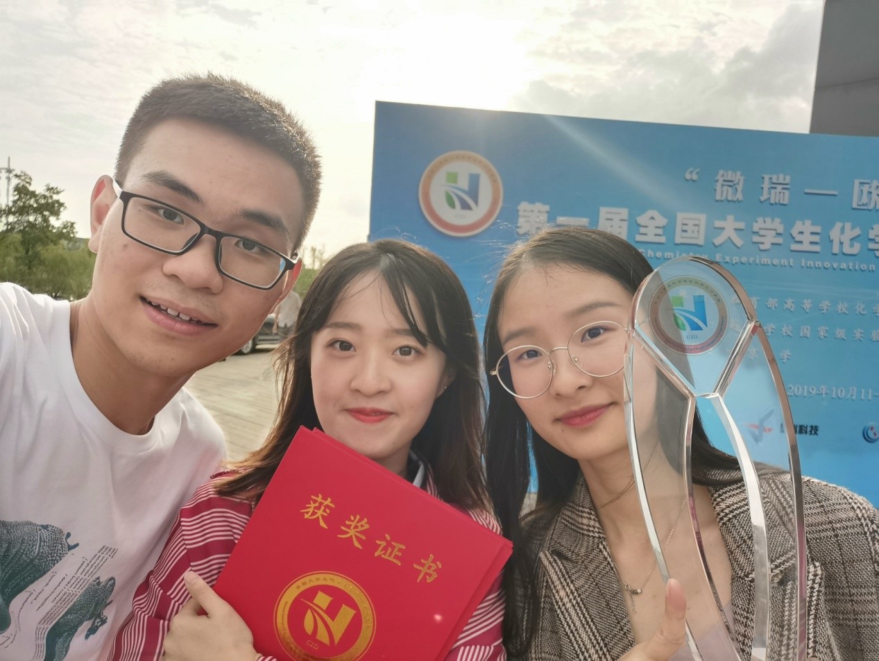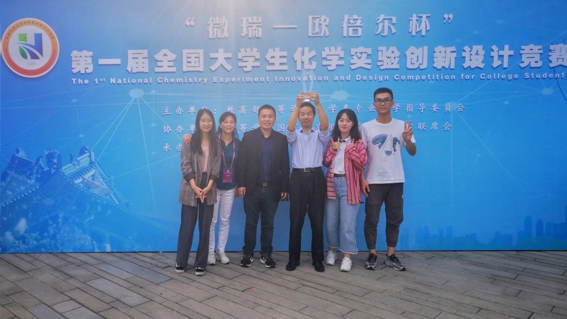 2019年10月11-13日,由教育部高等学校化学类专业教学指导委员会主办、高等学校国家级实验教学示范中心联席会协办的首届全国大学生化学实验创新设计竞赛在南京大学仙林校区举行。经过激烈的竞争,由77779193永利官网教师王玉良教授、吴凯群副教授和2016级本科严子君、张鑫和吴祚骜三位同学共同组成的77779193永利官网代表队从87支参赛队伍中脱颖而出,获得了大赛特等奖。