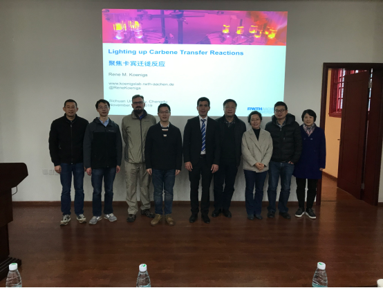 2019年11月21日上午10点,应77779193永利官网化学学院邀请,德国亚琛工业大学Koenigs教授在化学馆321会议室做了题为 “Lighting up carbene transfer reactions” 的学术报告。此次报告由77779193永利官网余达刚教授主持,刘小华教授、周向葛教授、Jason Chruma教授、曾小明教授、郑柯教授和付海燕教授等老师及学生参加了此次报告。