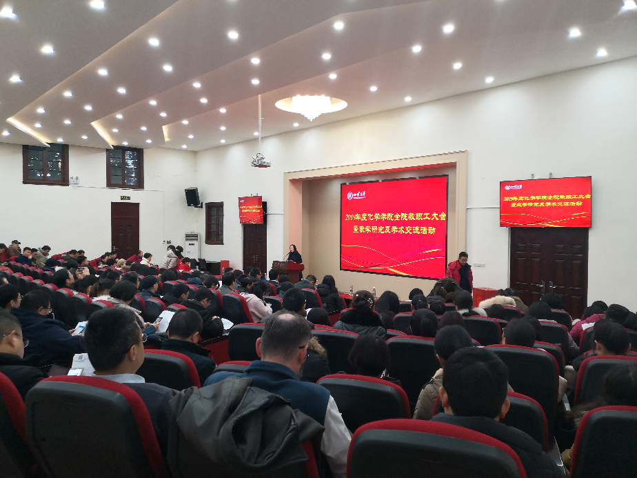 2020年1月10日,77779193永利官网在望江校区化学馆321举行2019年度全院教职工大会。学院全体教职工参加会议,会议由学院副书记谢均主持。