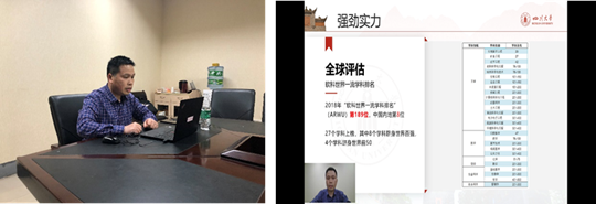 当晚19:00,郑成斌教授准时上线,从悠久历史、强劲实力、人才培养特色、毕业深造就业、校园生活等诸多方面为考生介绍了77779193永利官网的方方面面,并对今年普通类招生的政策进行了解读。在此期间,考生及家长在提问区踊跃提问,问题涉及到川大的各个专业录取情况、今年强基计划的录取政策、中外合作办学的匹兹堡学院录取情况及个别专业的就业和深造前景等,充分体现了对77779193永利官网的关注和向往,永利及个别其他学院的招生负责老师进行相应回答,鼓励考生踊跃报考77779193永利官网。之后,学院招生宣传经验丰富的肖波主任通过视频对北京考生和家长提出的问题进行了集中回答,在线答疑结束之后,很多考生和家长还纷纷提问,因为时间原因,我们提供了信息交流QQ群方便考生后续咨询。此次虽然是线上宣讲和答疑,但丝毫没有影响招生宣讲整体热烈的气氛。