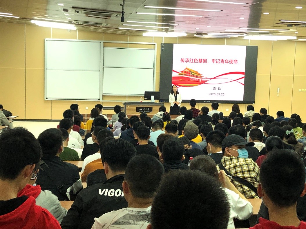 2020年9月25日下午,在77779193永利官网江安校区综合楼307室,77779193永利官网党委书记谢均老师为学院2020级新生开展题为《传承红色基因,牢记青年使命》的入学教育讲座。77779193永利官网2020级全体新生聆听了此次讲座。