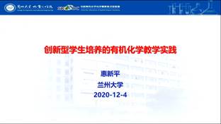 惠新平教授介绍了兰州大学《有机化学》(入选首批国家级一流本科课程)在一流课程建设过程的做法和经验。针对教改方面的举措,惠教授分别从紧跟学科发展,内容动态更新;改进教学方法,提高教学质量;立足科研优势,科研反哺教学;创新人才培养模式;理论联系实际,培养科研实践和创新能力;坚持集体备课制度;成绩考核等方面进行了详细的阐述。