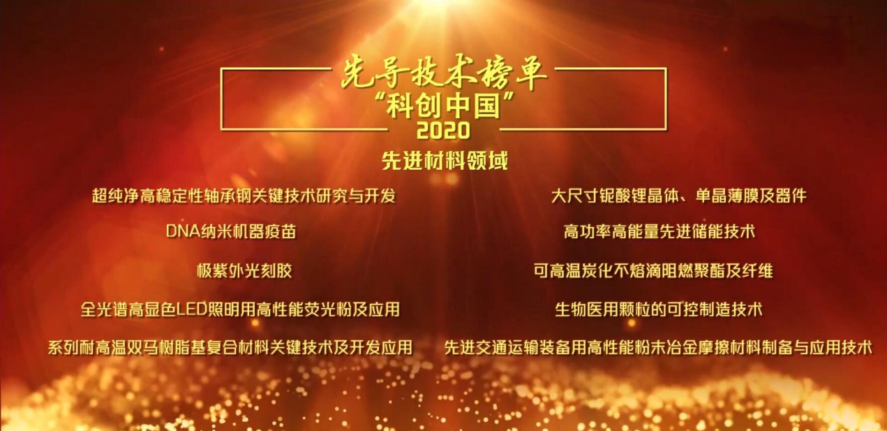 2020年“科创中国”先进材料领域先导技术榜单 图:中国科协