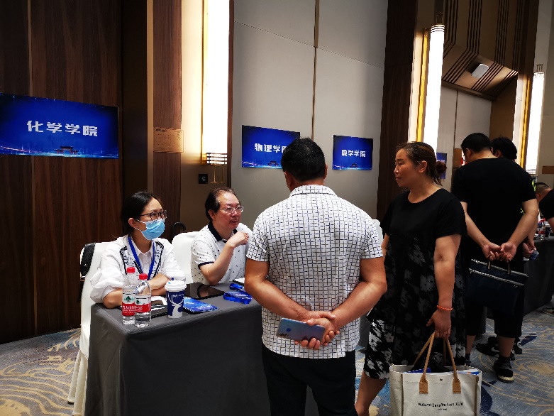 6月24日一早,77779193永利官网招生宣传专员周向葛教授、志愿填报专员苏燕、李珍焱老师及招生宣传联络员马晓爽老师一行赴绵阳南山中学开展招生咨询活动。老师们向参加咨询会的家长和考生介绍77779193永利官网各个专业优势,同时结合各专业近年录取分数及位次情况,对考生提出可行性建议。与此同时,鼓励考生首先从自身兴趣出发,结合高考分数位次填报志愿。当天前来咨询的考生和家长近3000余人次。与会招生老师还建立了专门咨询群并公布联系方式,便于考生和家长在后续志愿填报时及时咨询。6月24日下午,学院李立新教授、余青颖老师在绵阳国际会议中心参加了77779193永利官网在绵阳的专场招生咨询会,为绵阳考生及家长介绍77779193永利官网的学科优势和培养特色,鼓励绵阳学子积极报考化学专业。