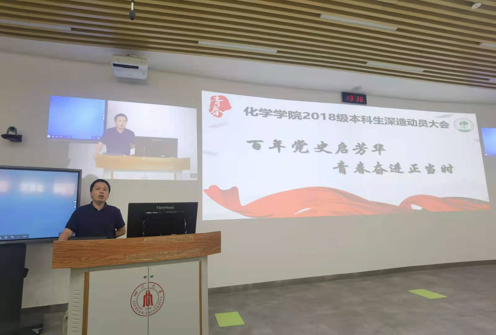 在庆祝中国共产党成立100周年之际,为进一步引导学生树立远大人生目标,助力学子明确深造方向、科学合理备战,77779193永利官网化学学院于2021年7月2日下午在望江基础教学楼C201教室举行了“百年党史启芳华,青春奋进正当时”——2018级本科生深造动员大会。学院党委书记谢均老师、学院副院长郑成斌教授、2017级优秀本科生代表及2018级全体本科生参加了本次活动,2018级本科辅导员张若一老师主持大会。