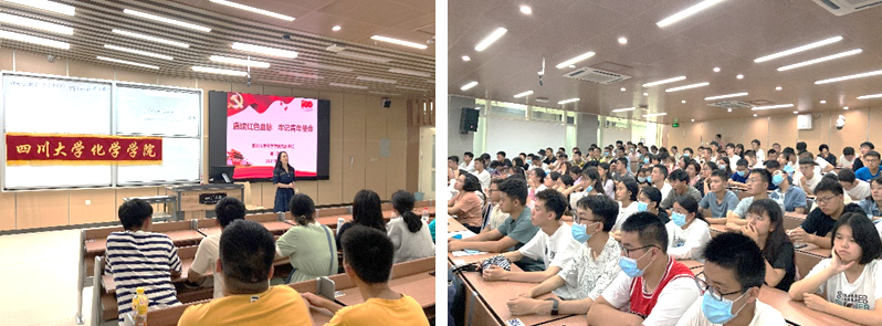2021年9月7日晚,谢均书记在综C307教室,为2021级新生开展入党知识教育讲座“赓续红色血脉,牢记青年使命”,深情讲述了中国共产党的发展历史和川大的红色基因,字里行间充满对党和学校的热爱,详细介绍了入党流程,并耐心为同学们答疑解惑。