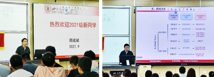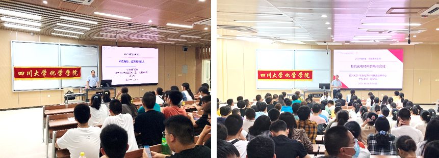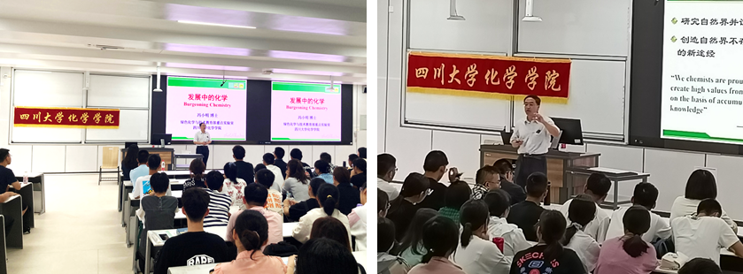 为增强新同学对于化学学科的深入理解,学院特别邀请冯小明院士和王玉忠院士分别为新同学开展讲座,讲述科学故事,分享科研感悟。