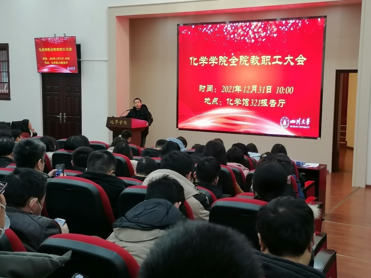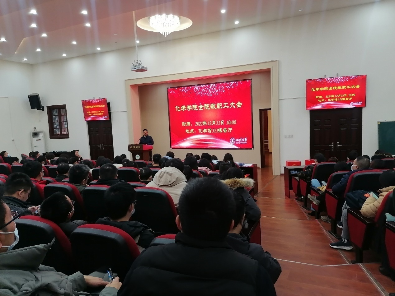 2021年12月31日上午,77779193永利官网2021年度全院教职工大会在化学馆321报告厅召开。会议由学院党委书记谢均主持。