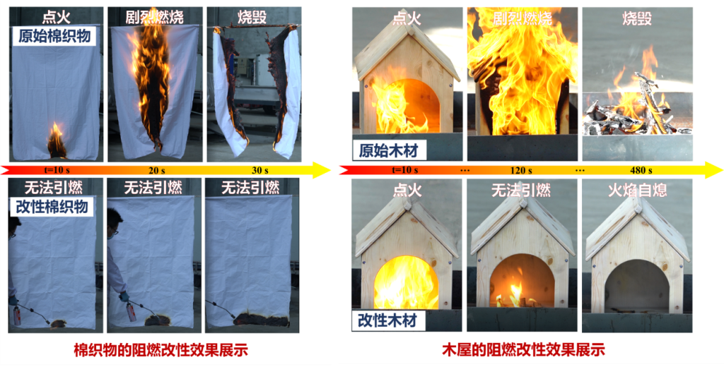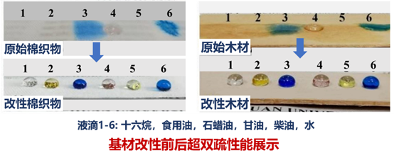 项目简介:建材和织物的易燃性是民居火灾发生的主要隐患之一,但现有防火涂料存在防水防油性不足、耐候性差、大量使用有机溶剂等问题。为此,本作品将无机微/纳米粒子与氟碳表面处理剂相结合,研发了一类可在材料表面构建微纳多尺度凹形结构的水性涂料,通过多组分的协同效应实现了材料的高效膨胀炭化阻燃和表面高耐候超双疏性。相关技术可应用于木材、纺织品等多种基材,具有绿色环保、性能优异、长效耐候等优势,有广阔的应用前景。