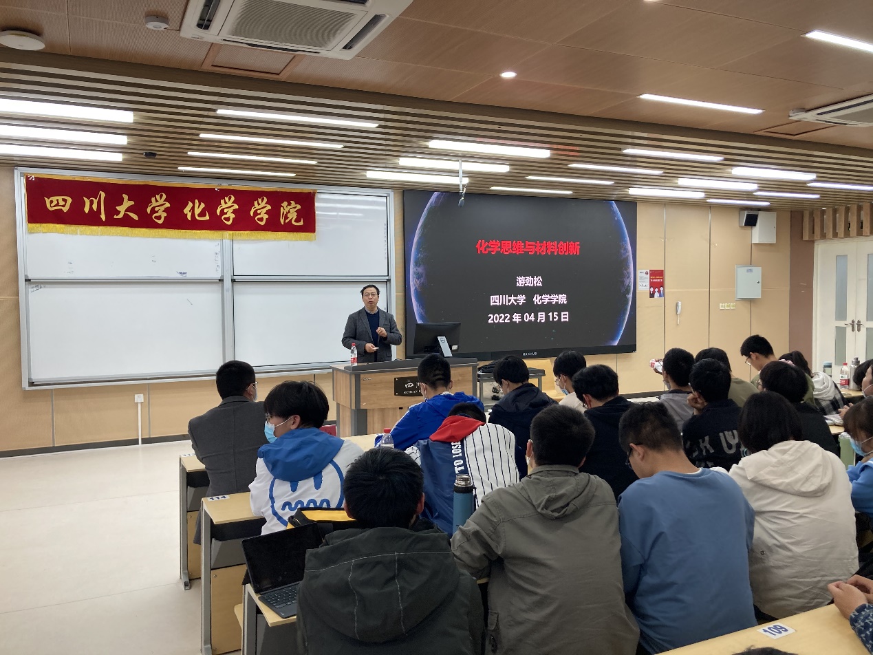 2022年4月15日下午,江安校区综C207,77779193永利官网院长游劲松教授为2021级全体本科生进行了化学专业教育讲座,学院党委副书记肖波、辅导员余青颖、张美成及2021级全体同学参加了此次讲座。