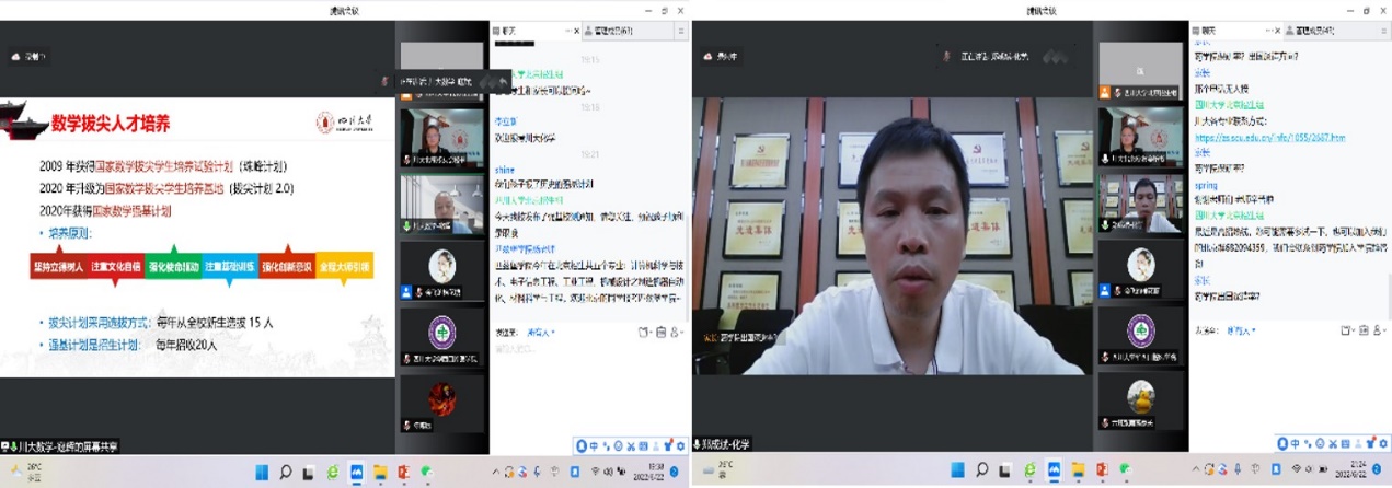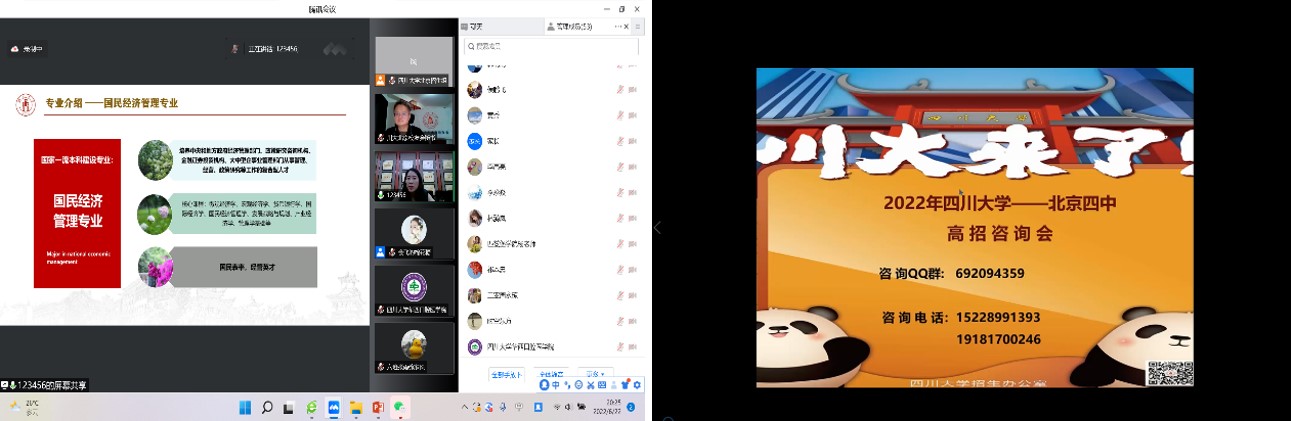 6月22日-6月26日高招集中咨询期间,77779193永利官网作为77779193永利官网北京招生工作组,开展了针对北京考生和家长的线上宣讲及咨询会,为北京地区的考生和家长介绍77779193永利官网各个专业情况及报考相关政策,吸引优秀生源报考川大。