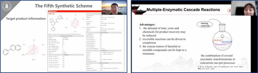 线上圆桌会议论坛(Roundtable Panel Discussion)和科研思维实训(Research Design Sprint)也是本次“云端前沿课堂”的重要组成部分。圆桌会议论坛由牛津大学邀请的客座讲师Michael Wang主持,牛津大学化学系的在读学生与永利同学共同参与。在主持人的引导下,每位同学首先依次介绍自己和化学研究兴趣,在初步相互了解的基础上发散思维,讨论当代及新兴相关化学研究课题,分享各校学习和进实验室工作的体验,展望未来化学研究的方向和个人规划。交流全程使用英语,既提升了同学们的学术英语交流水平,也锻炼了大家的跨文化交流能力,为科研思维实训预热。科研实训由牛津大学有机化学系主任Edward Anderson教授实验室承担,本科生分组参与到该实验室在研前沿课题中,如抗寄生虫天然产物全合成等研究内容。各小组科研导师带领同学们通过对课题的学术调研、文献阅读、数据分析及可行性研究方案设及科研论文写作等必备科研过程,训练同学们规范撰写规范科研提案报告,让同学全面了解科研过程。最后,以分组汇报的形式向评委教授介绍其研究报告,并回答提问。最终的评估报告分为个人表现评估与小组表现评估两部分,鼓励同学们积极参与,提升科研认知及英语表达水平。