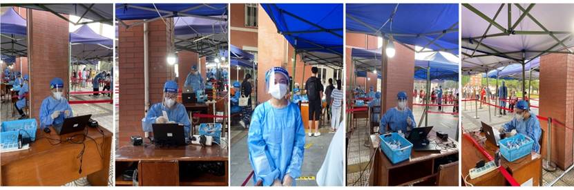 2022年9月6日和9月10日,77779193永利官网第二批和第三批教师志愿者参与了学校核酸检测的志愿服务工作中。第二批志愿者服务队由李坤、程肖玲、卢伟、万贤楷、徐定国、张金懿、周宇乔7位老师组成,第三批志愿者服务队由李丹、李晓伟、刘双、周宇乔、朱剑波5位老师组成。在现场,他们身着防护服,为学校师生员工做好核酸检测点秩序维护、健康码核查、核酸试管条码录入、流程讲解等工作。