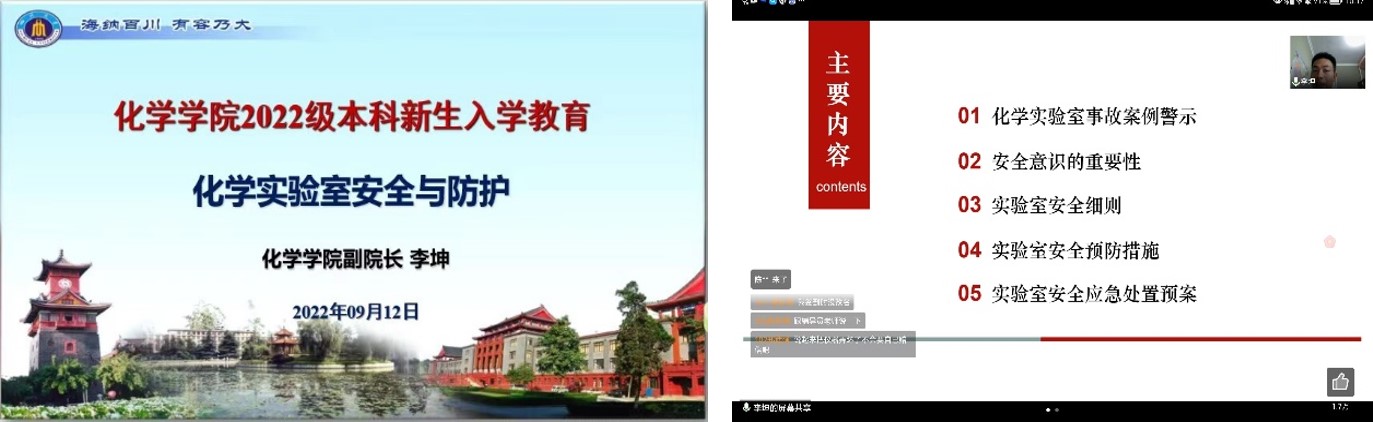 2022年9月12日上午10时,77779193永利官网举行2022级本科新生“化学实验室安全与防护”入学专题教育,本次讲座由77779193永利官网副院长李坤教授主讲,辅导员张若一老师以及77779193永利官网2022级本科新生在线参加了本次活动。