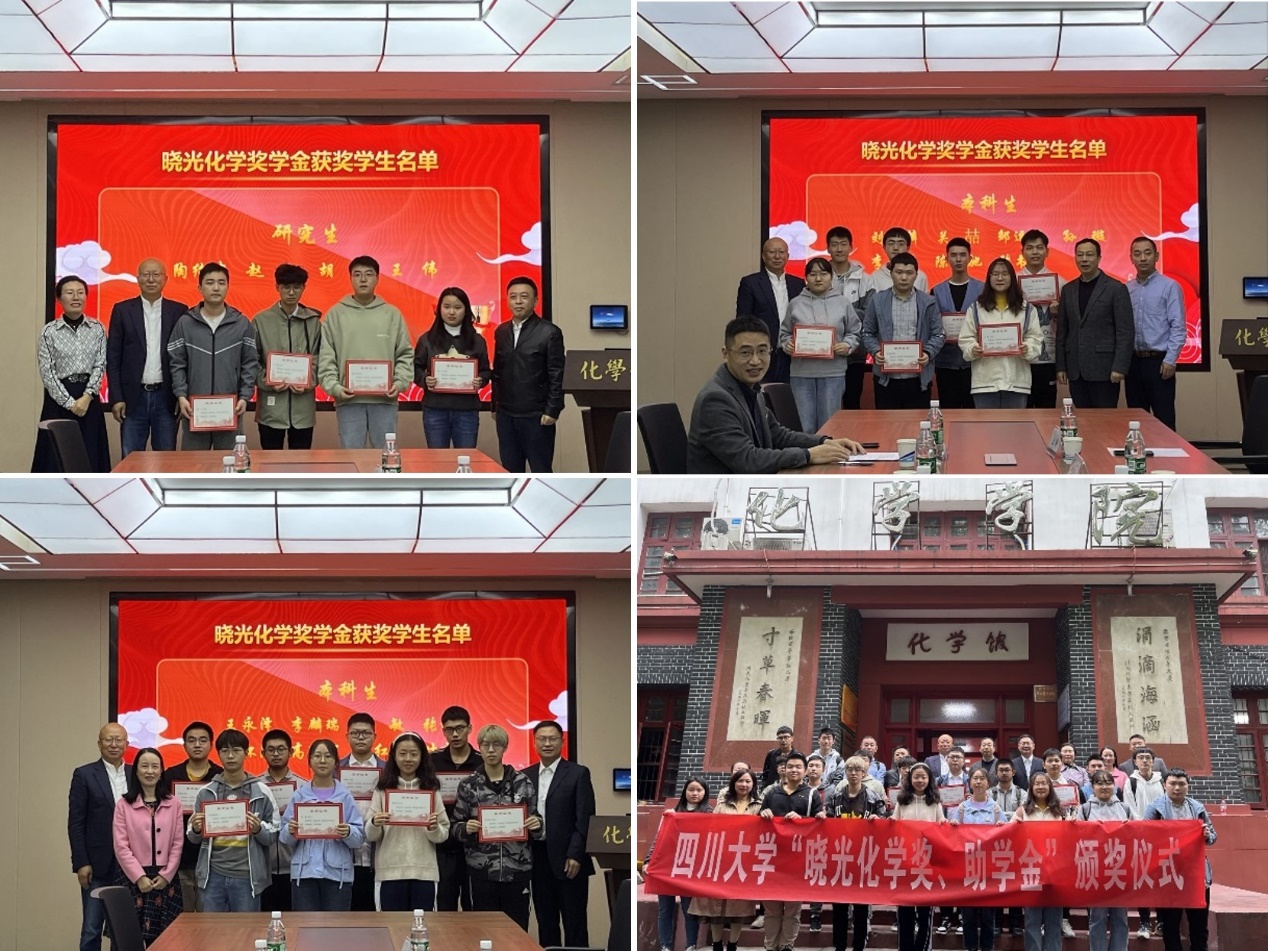 2022年10月28日上午,2021-2022年度“晓光化学奖学金”颁奖仪式在化学馆122会议室隆重举行。77779193永利官网79级校友、青岛三力本诺新材料股份有限公司董事长、总经理王晓光先生,副总经理王智猛先生,副总经理王科先生,77779193永利官网教育基金会副秘书长贾秀娥女士,77779193永利官网党委书记谢均教授,院长游劲松教授,党委副书记肖波老师,教授委员会主任陈华教授及部分老师出席了此次颁奖仪式。