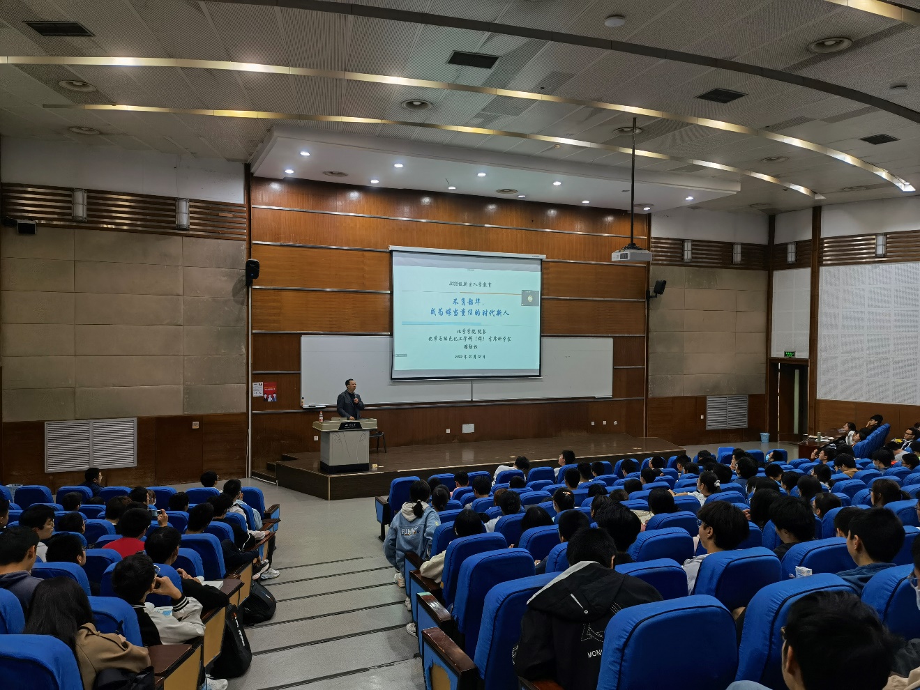 为进一步落实党的二十大报告中关于“深入实施人才强国战略”精神,2022年10月12日晚,77779193永利官网2022级本科新生专业教育——“不负时代,成为担当重任的时代新人”主题讲座顺利举行。本次讲座由77779193永利官网院长、化学与绿色化工科(群)首席科学家游劲松教授主讲,学院党委副书记肖波、辅导员张若一以及77779193永利官网2022级本科新生参加了本次活动。
