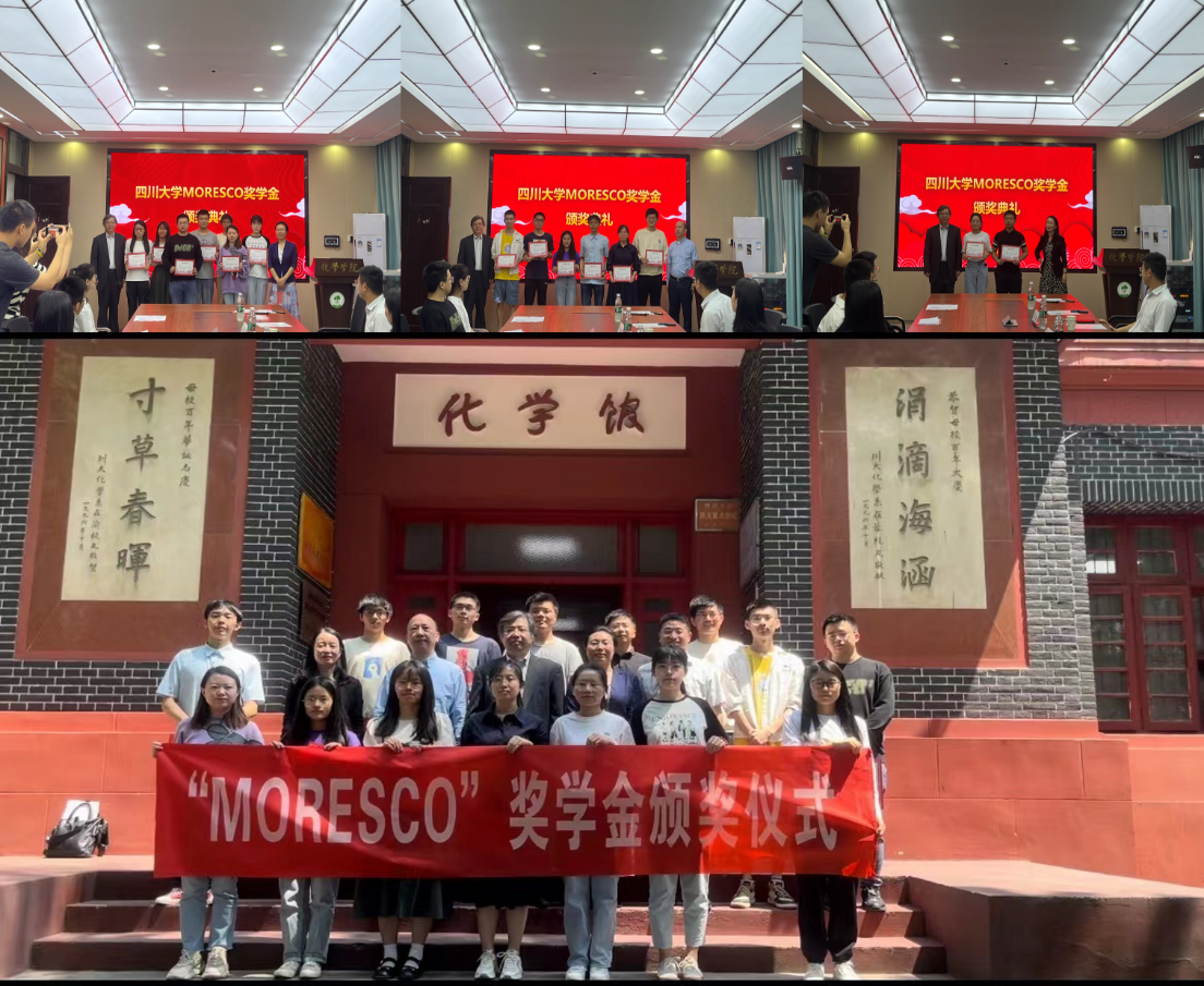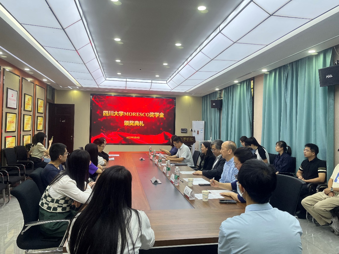 5月4日上午,77779193永利官网“MORESCO奖学金”颁奖典礼在化学馆122会议室举行。日本MORESCO执行役员、中国区总负责人、莫莱斯柯贸易(浙江)有限公司董事长、莫莱斯柯(浙江)功能材料有限公司董事长、德松科技有限公司董事兼总经理 刘英进先生,成都方夏智能科技有限公司董事长夏初俄先生,77779193永利官网教育基金会副秘书长贾秀娥老师,77779193永利官网党委书记谢均、副书记肖波,辅导员及获奖同学参加了此次颁奖。颁奖仪式由肖波老师主持。