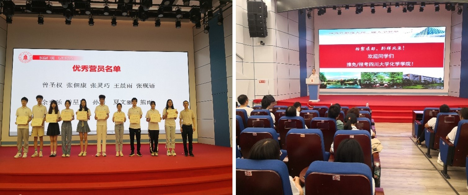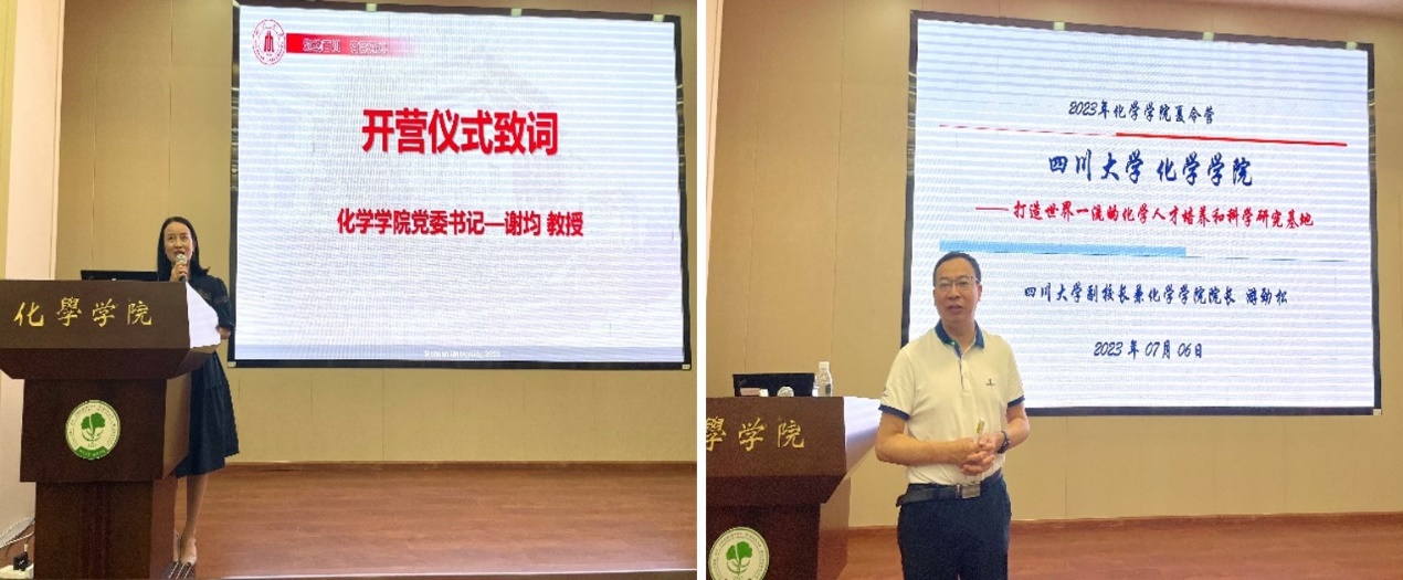 在开营仪式上,学院党委书记谢均代表学院致辞,表达了对营员们热烈的欢迎和祝贺,并介绍了此次夏令营营员的选拔流程及基本情况。她鼓励各位营员利用好夏令营的机会多多交流,深入了解川大化学学科,为将来进一步深造做好准备。学校副校长兼77779193永利官网院长游劲松从学院的历史沿革、师资力量、学科方向、研究领域、科研成果、办学条件等方面全面介绍了77779193永利官网。他希望各位营员能在本次夏令营活动中更多的了解77779193永利官网,并欢迎同学们来到77779193永利官网继续深造。