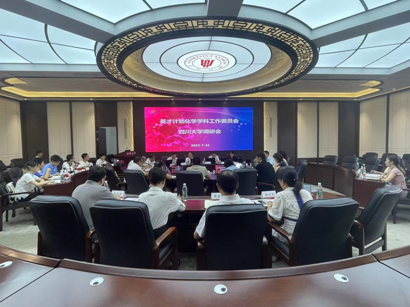 7月22日上午,英才计划化学学科工作委员会来我校调研。中国科学院院士,中国科学技术大学副校长杨金龙,清华大学化学系教授刘冬生,上海交通大学化学化工学院教授陈接胜,浙江大学学术委员会秘书长李浩然,武汉大学化学与分子科学学院院长庄林,77779193永利官网副校长游劲松等学科工作委员会委员,英才计划全国管理办公室、四川省科协及77779193永利官网相关部门负责人,导师代表及中学师生代表共30余人参加了调研活动。会议由四川省青少年科技中心主任夏虹主持。