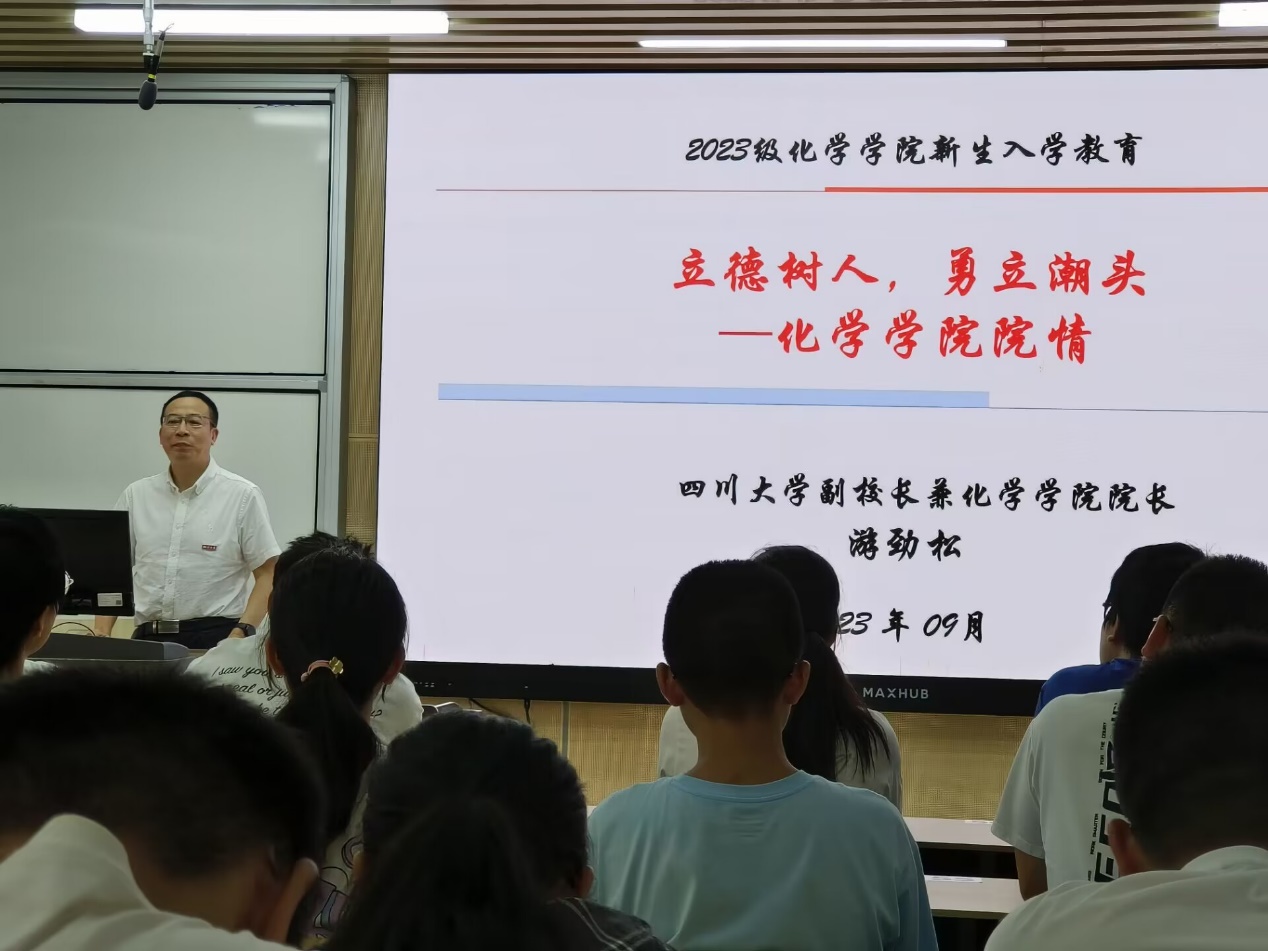 为了落实立德树人的根本任务,培养学生的家国情怀,争做能够勇立潮头、堪当大任的社会主义新人。9月13日下午,在江安校区综合楼C207,77779193永利官网2023级本科新生入学教育讲座“立德树人,勇立潮头-77779193永利官网院情介绍”顺利举行。本次讲座由77779193永利官网副校长、77779193永利官网院长、化学与绿色化工科(群)首席科学家游劲松教授主讲,由学院党委副书记肖波主持。辅导员及全体学院2023级本科新生参加了本次讲座。