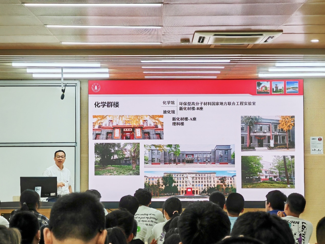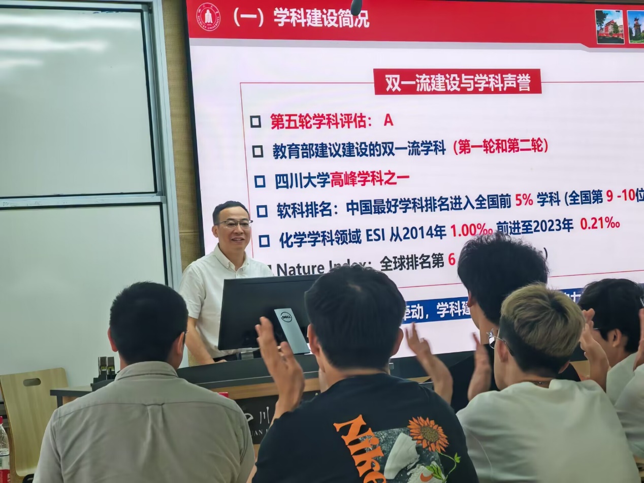 首先,游劲松院长从77779193永利官网历史沿革、学院发展与建设、人才培养、知名校友等方面全方位介绍了77779193永利官网,让同学们更加深入了解学院情况,展现了川大化学人勤耕不辍,勠力同心的精神风貌。