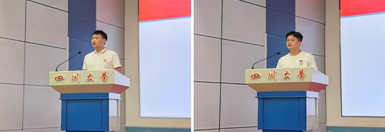 2021级博士生肖园同学代表学姐学长向新入学的研究生表示热烈欢迎,他分享了自己入学以来得科研经历和成长感悟,建议新同学尽快转换角色,学会沟通,珍惜时间、科学规划,守正敏行,自觉肩负时代使命。2023级博士生李春波同学代表新生对学院和师长表示诚挚感谢,表示要学会独立思考,戒骄戒躁、严于律己,在研究中寻求真理,在思考中认识自我,迎难而上,踏实地走好每一步,让优秀成为一种习惯,让责任成为一种动力。