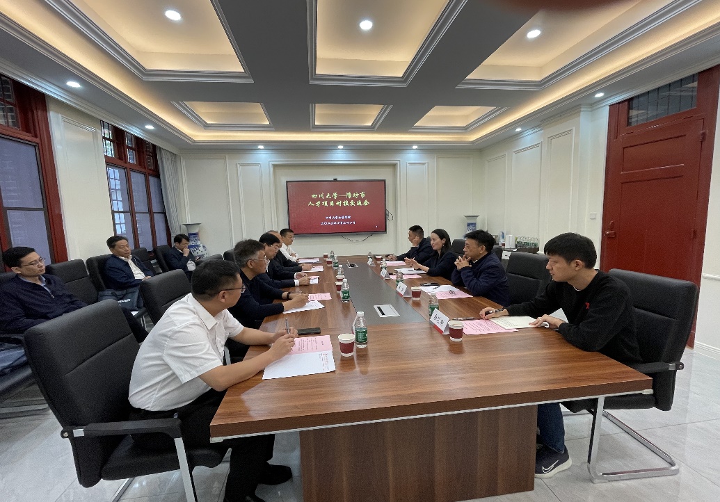 谢均书记代表学院对代表团一行表示欢迎,并简要介绍了学院近年来基本情况,重点介绍了师资队伍、人才内培外引、科学技术研究、产业转化、社会服务等方面的发展情况。刘太福代表潍坊市代表团对学院的热情接待表示感谢,他简要介绍了潍坊市科技、经济、文化、教育等社会发展情况和人才政策、产业基础、营商环境等优势。他表示77779193永利官网办学历史悠久、底蕴深厚、办学成效显著,潍坊市企业与77779193永利官网有着长期密切的合作,并表示期待与川大77779193永利官网携手,进一步加强优势互补,深化务实合作,推动潍坊市科技产业建设,积极吸引人才去潍坊干事创业,携手互利共赢,推动双方高质量发展。