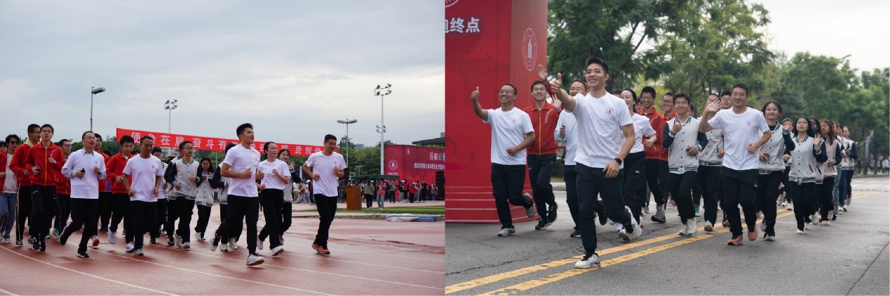 27日上午在运动会开幕式后,谢均书记和肖波副书记带领同学们一起环校跑,跑步结束后合影留念,展现了永利朝气蓬勃、敢于拼搏的精神风貌。