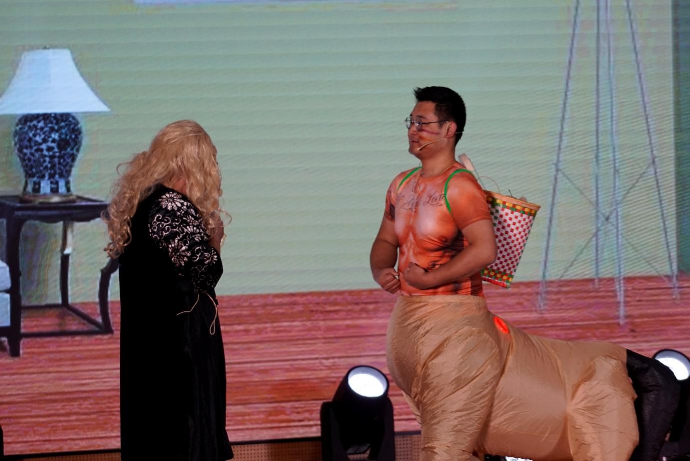 整场晚会共有十六个节目,其中包括诙谐幽默的小品相声、激情四射的演唱和舞蹈等。一年级的研究生燃情的开场舞《Talk That Talk》宛如一道烟花,在舞台上炸裂绽放,振奋人心。节奏跳动的旋律,伴随着舞者们独特的编排和精准的舞步,让整个现场仿佛被点燃了热情的火焰。接下来的小品和相声《谁逼疯了周日》、《消失的父亲》、《智取威虎山》则以轻松幽默的表演使观众的笑声不断,掌声如潮。《小人舞》则以其别出心裁的滑稽表演令观众捧腹大笑。
