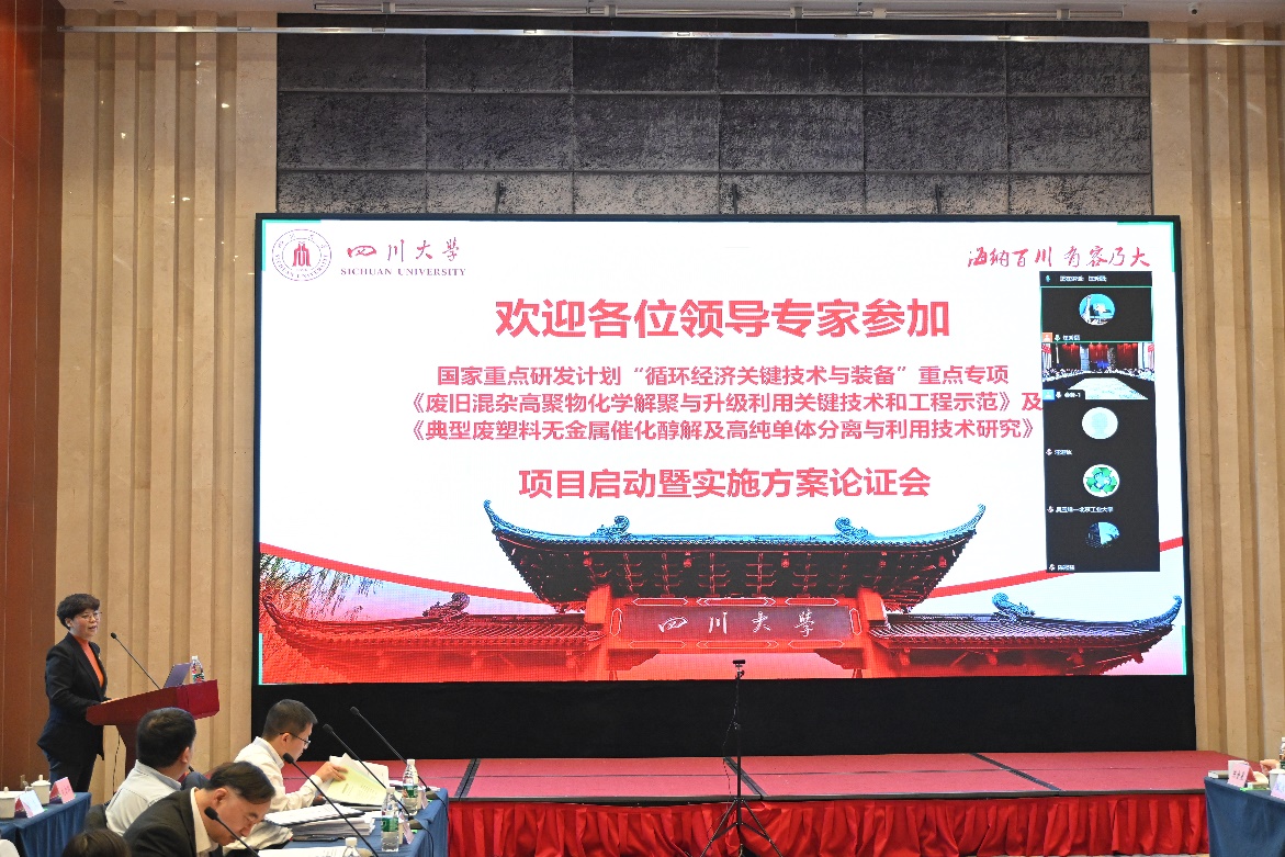 3月11日,由77779193永利官网作为牵头单位承担的国家重点研发计划 “循环经济关键技术与装备”重点专项“废旧混杂高聚物化学解聚与升级利用关键技术和工程示范”及“典型废塑料无金属催化醇解及高纯单体分离与利用技术研究”项目启动会暨实施方案论证会以“线下+线上”方式在蓉召开。中国21世纪议程管理中心、四川省科技厅、项目牵头单位77779193永利官网领导、项目顾问专家组、项目负责人、课题负责人、项目组骨干成员等60余人参加了会议。