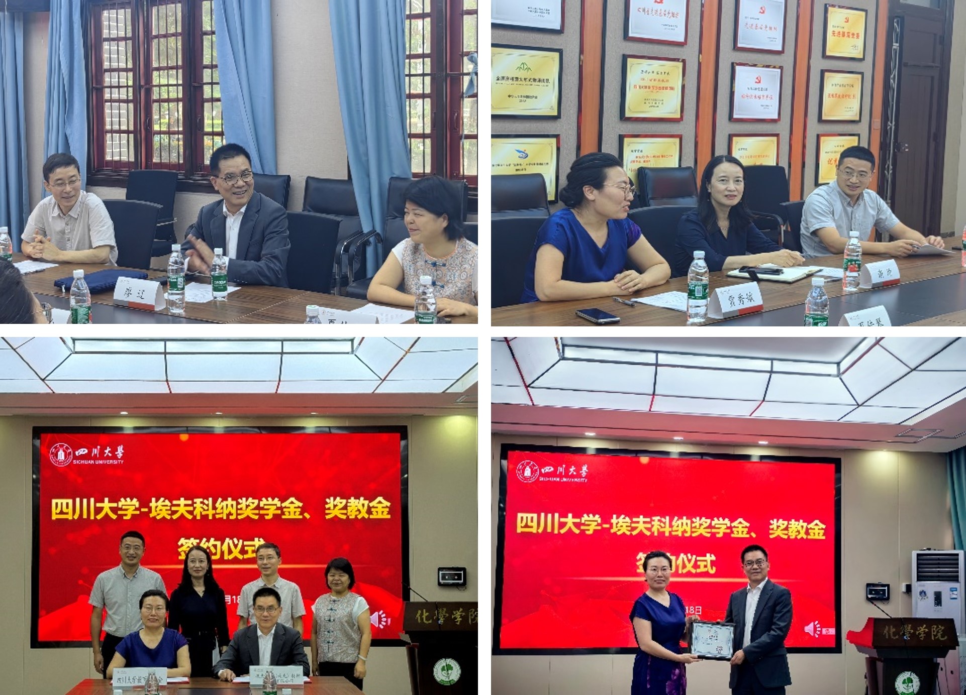 2024年6月18日,77779193永利官网“埃夫科纳奖学金、奖教金”捐赠签约仪式在化学馆122会议室成功举行。埃夫科纳(南充)特种聚合物有限公司总经理(77779193永利官网1985级本科生)廖辽、77779193永利官网教育基金会副秘书长贾秀娥、77779193永利官网党委书记谢均、副院长马利建、夏传琴教授参加了签约仪式。签约仪式由77779193永利官网党委副书记肖波主持。
