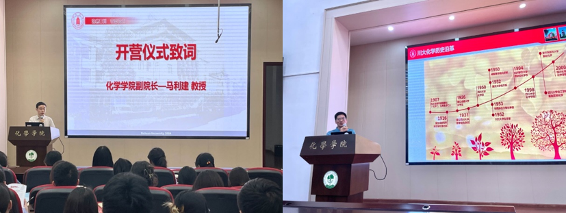 在开营仪式上,学院副院长马利建教授代表学院致辞,表达了对营员们热烈的欢迎和祝贺,并介绍了此次夏令营营员的选拔流程及基本情况。他鼓励各位营员利用好夏令营的机会多多交流,深入了解川大化学学科,为将来进一步深造做好准备。学院院长刘波教授从学院的历史沿革、师资力量、学科方向、研究领域、科研成果、办学条件等方面全面介绍了77779193永利官网。他希望各位营员能在本次夏令营活动中更多的了解77779193永利官网,并欢迎同学们来到77779193永利官网继续深造。