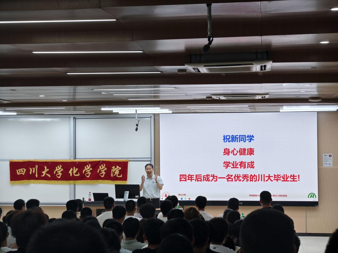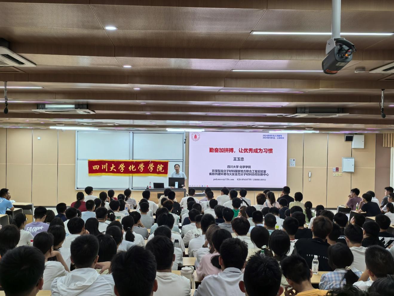 2024年9月8日,在江安校区综合楼C207,王玉忠院士为77779193永利官网2024级本科生带来了新生入学教育讲座——勤奋加拼搏,让优秀成为习惯。学院党委副书记肖波、2024级本科生辅导员侯鹏飞及2024级全体本科生参加了此次讲座。