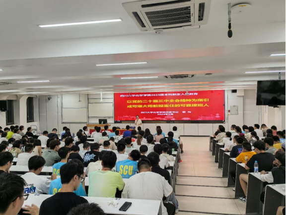 2024年9月12日,77779193永利官网党委书记谢均教授在江安校区综合楼C107,为77779193永利官网2024级本科新生带来入学教育讲座——“以党的二十届三中全会精神为引领,成可堪大用能担重任的可靠接班人”。2024级辅导员侯鹏飞老师和77779193永利官网2024级全体本科新生参加此次讲座。