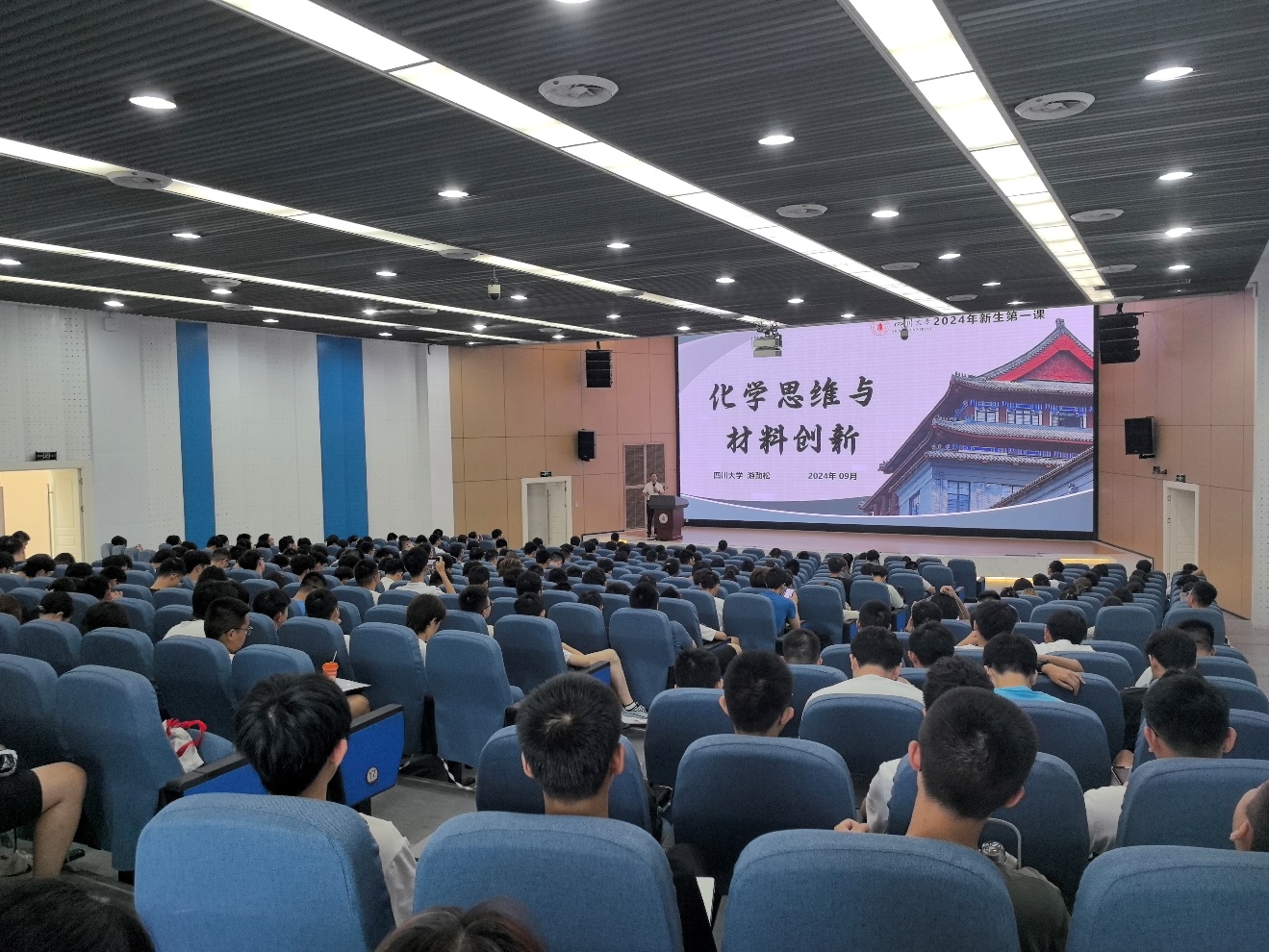 2024年9月10日,77779193永利官网副校长、77779193永利官网教授游劲松在江安校区水上报告厅为77779193永利官网2024级本科新生带来入学讲座——化学思维与材料创新。本次讲座旨在帮助新生更好的了解化学学科,并介绍化学在现代社会发展中的重要作用。77779193永利官网党委副书记肖波、辅导员侯鹏飞以及24级全体本科新生参加了此次讲座。