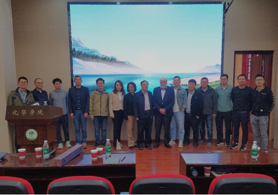 在报告中,Gerhard Erker教授主要介绍了“受阻路易斯酸碱对”frustrated Lewis pairs(FLPs)合成及应用的研究,通过理性设计分子结构,使分子内或分子间同时具有路易斯酸和路易斯碱两个位点不能结合形成路易斯酸碱加合物,从而具有独特的反应活性。报告中,Erker教授详细介绍了研究团队的近期重要成果,这些结构独特的FLPs结构与不同的不饱和小分子反应,展现出独特的反应性并生成前所未有的化合物结构。FLPs还可以进行类似金属的小分子活化反应,异裂氢气分子并应用于无金属参与的催化氢化反应。此外,还讨论一些特别设计的硼烷反应,包括borole硼杂环戊二烯和borapyramidane的合成。在报告过程中,Erker教授讲解内容循序渐进,由浅入深,坦诚的经验分享使得在座的老师、同学们获益颇深。报告结束后,Erker教授与在座的师生展开了热烈的讨论,并详细解答了与会人员所提出的问题使大家对Erker教授的研究领域有了进一步认识,现场学术气氛浓厚。