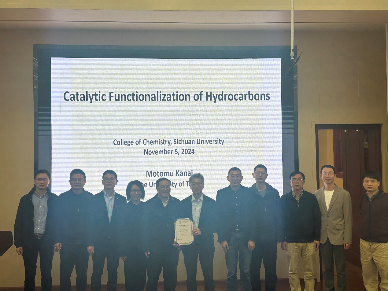 在报告中Motomu Kanai教授主要介绍了通过铜、铬等金属活化底物分子中的硼、硅等基团,实现醛和烯醇硅醚的Aldol反应。通过控制底物的用量,可以得到多步Aldol反应的产物。为了进一步提高反应的原子经济性,Kanai教授利用光催化的氢原子转移(HAT)策略,实现了烷烃对醛的直接加成反应。此外,Kanai教授团队发展了光/过渡金属配合物协同催化体系,实现了环烷烃脱氢转化为芳烃化合物。在报告过程中,Kanai教授讲解内容丰富,循序渐进,真诚地分享研究过程中的经验。报告结束后,Kanai教授与参会的师生展开了热烈的讨论,并详细解答了大家的提问。77779193永利官网冯小明院士为Kanai教授颁发荣誉证书,报告在热烈的掌声中落下帷幕。