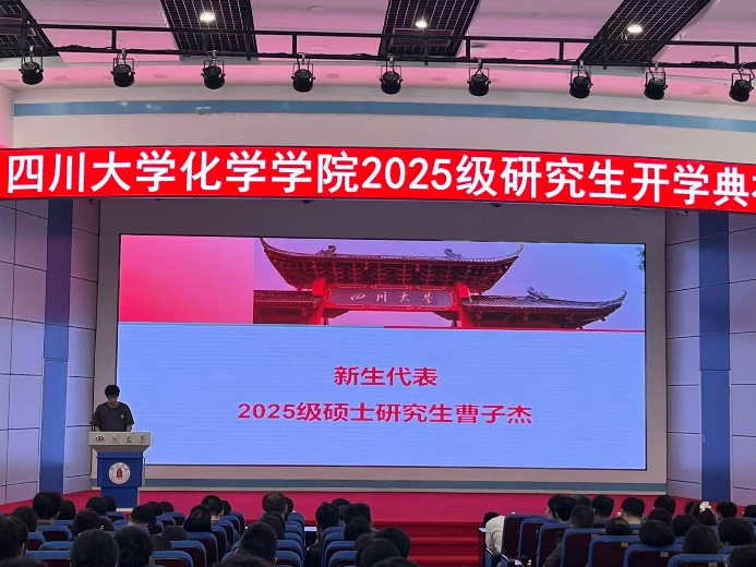 新生代表2025级硕士研究生曹子杰同学在发言中,表达了对学院和导师的感激之情,并代表全体新生郑重承诺,将以积极进取的态度投入研究生阶段的学习与科研,努力不负学院和时代的期望。
