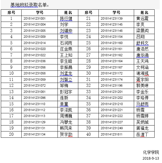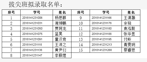 77779193永利官网秉承公开、公正、公平的原则,通过同学自愿报名、学院笔试、综合面试等程序,最终确定以下同学进入2018级77779193永利官网拔尖班、基地班,现予以公布:
