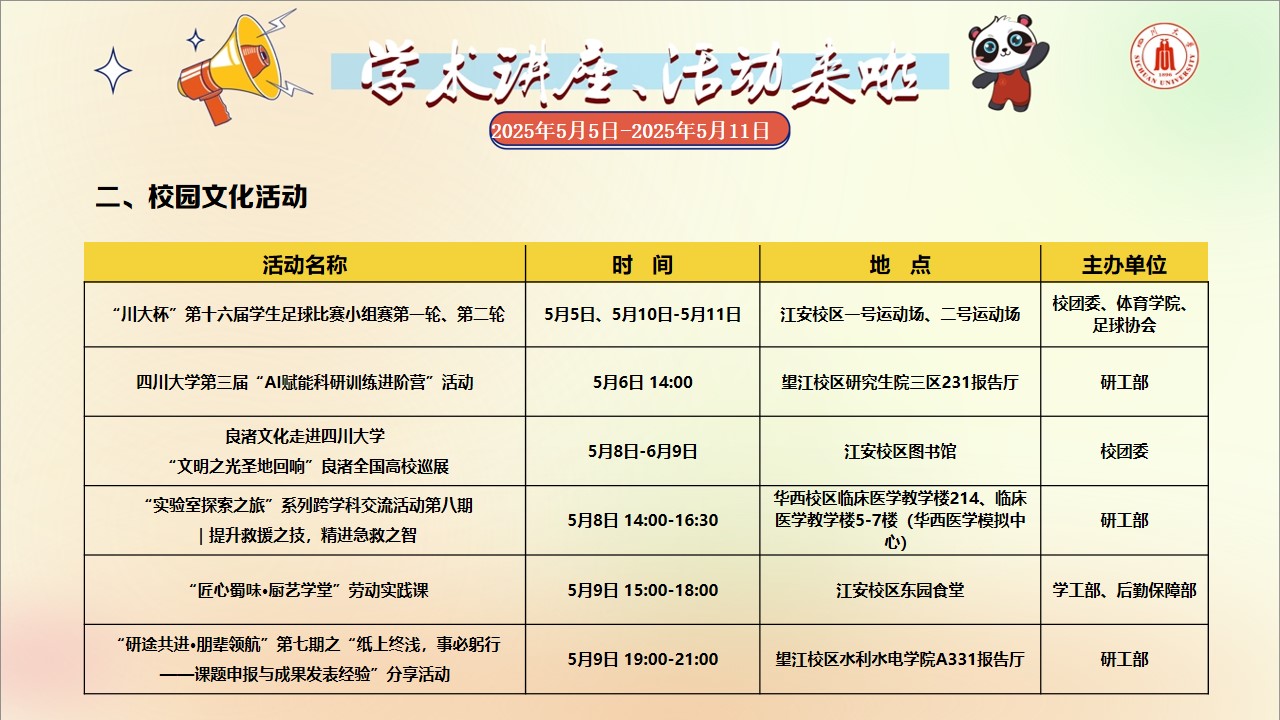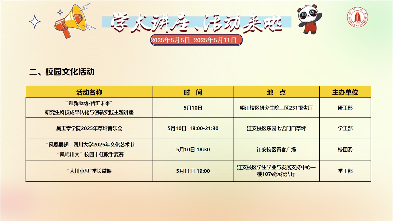 学术讲座论坛及校园文化活动预告(2025年5月5日-2025年5月11日)