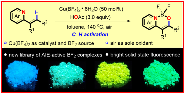 8. Guangying Tan, Malte L. Schrader, Constantin Daniliuc, Felix Strieth-Kalthoff, and Frank Glorius*, C–H activation based Copper-Catalyzed One-Shot Synthesis of N,O-Bidentate Organic Difluoroboron Complexes. Angew. Chem. Int. Ed. 2020, 59, 21541 –21545.