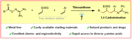 5. Guangying Tan, Mowpriya Das, Hyeyun Keum , Peter Bellotti, Constantin Daniliuc and Frank Glorius*, Photochemical Single-Step Synthesis of β-Amino Acid Derivatives from Alkenes and (Hetero)arenes. Nat. Chem. 2022, 14, 1174-1184.