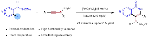 14. Guangying Tan and Jingsong You*, Rhodium(III)-Catalyzed Oxidative Cross-Coupling of Unreactive C(sp3)−H Bonds with C(sp2)−H Bonds. Org. Lett. 2017, 19, 4782−4785.